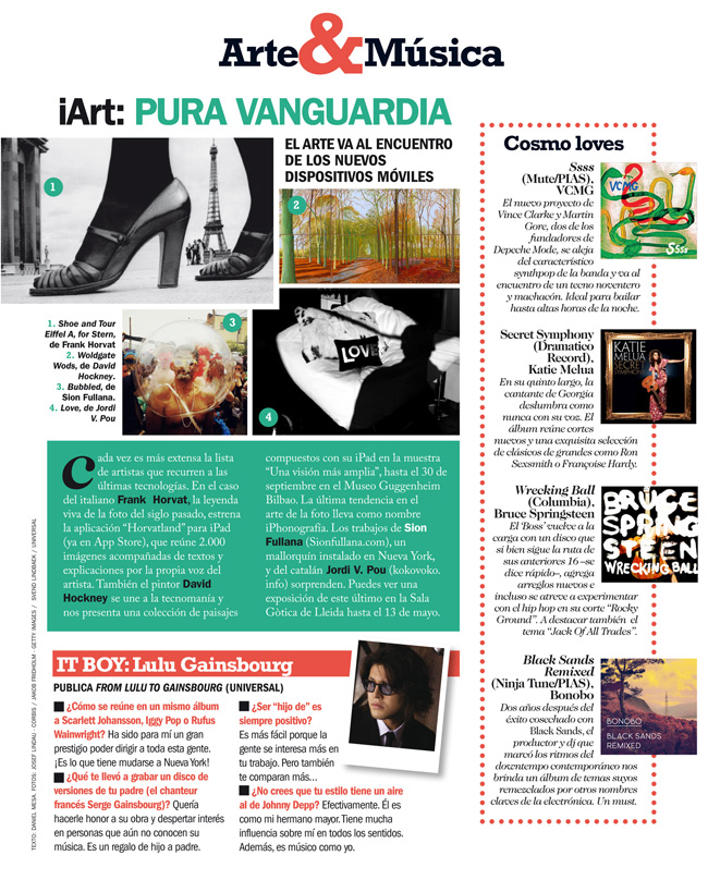 May 2012 edition of spanish Cosmopolitan magazine includes an article “iART:Pura Vanguardia. El arte va al encuentro de los nuevos dispositivos móviles“, iART: Pure Edge. Art meets the new mobile devices, including one of Jordi V. Pou images from Kokovoko project and a mention to actual exhibition in Lleida.