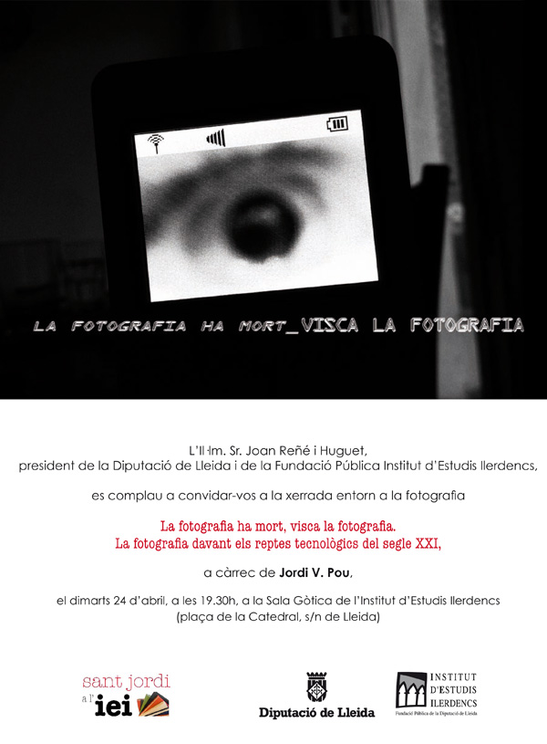 Jordi V. Pou will be giving a lecture on Tuesday April 24 about photography and new technologies entitled “Photography is dead, long live photography!“